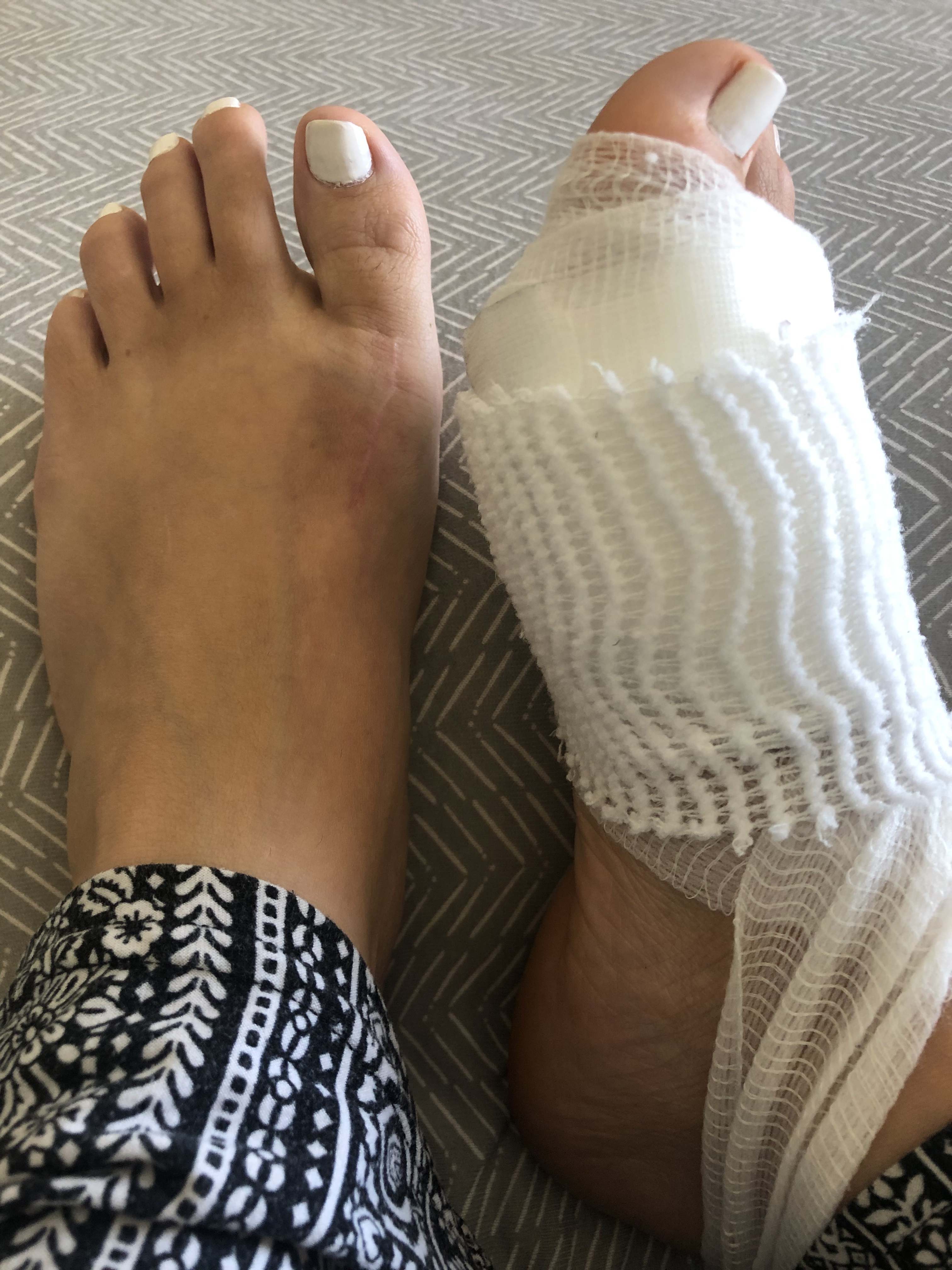 Last summer I had my first bunion surgery, or bunionectomy, on my left foot. Now, a year later, I am recovering from surgery on my other foot. It’s been a week of laying in bed, wishing I was outside, and watching way too much YouTube (I even watched a whole bunion surgery video!), and I thought I might as well write about my experience.